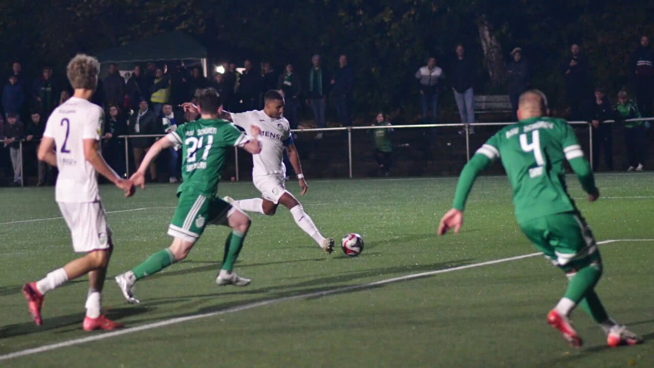 David Winke trifft zum zwischenzeitlichen 4:1. Mit drei Treffern hat der Kapitän des FC Gütersloh entscheidenden Anteil am Weiterkommen seiner Mannschaft [Foto: FLVW].