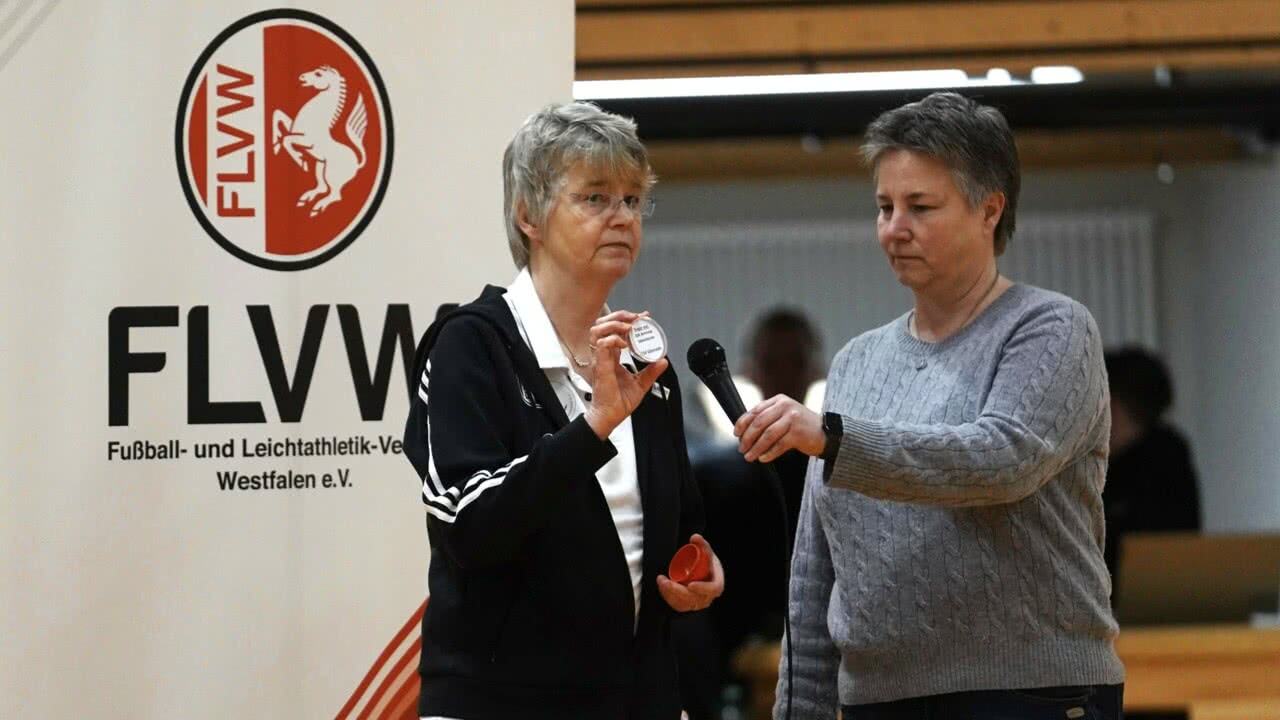 Marianne-Finke-Holtz (l.) und Pokalspielleiterin Larissa Struck haben im Rahmen des Turniers die Halbfinal-Auslosung für den Westfalenpokal der Frauen vorgenommen.