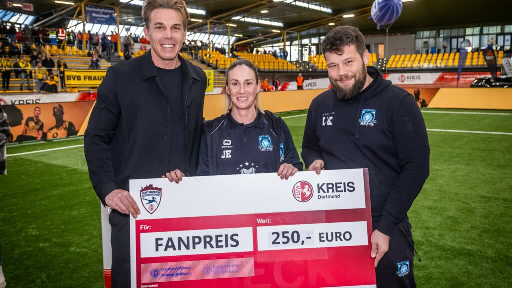 Der Fanpreis der AOK ging an zwei besonders laute Fangruppen in der Helmut-Körnig-Halle. Zum einen an die Fans vom TV Brechten und Westfalia Dortmund.